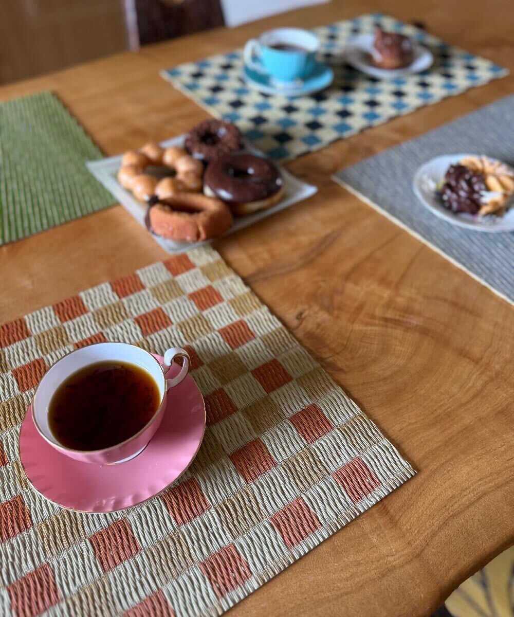 ランチョンマットに限らず、 小物置きやテーブルのセンターにしたり、観葉植物を載せたり、お花の下に敷いたり、色んな用途としてご使用頂けます。