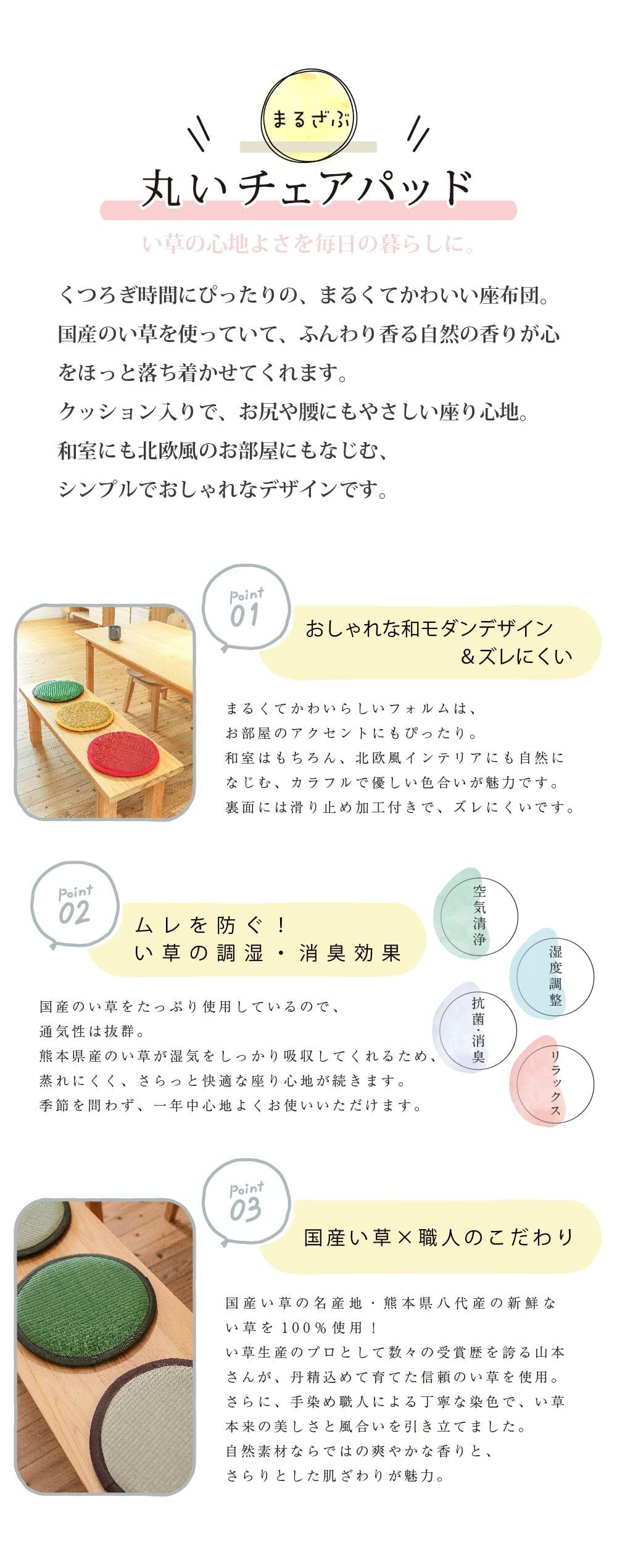 チェアパッド い草座布団 国産 日本製 クッション 椅子用クッション ダイニングチェア用 シートクッション い草クッション 和モダン おしゃれ 畳風 クッションカバーなし シンプル 北欧風 和風モダン 消臭 調湿 座布団代わり 背当て 腰当て 国産い草 熊本八代産 快適 和インテリア