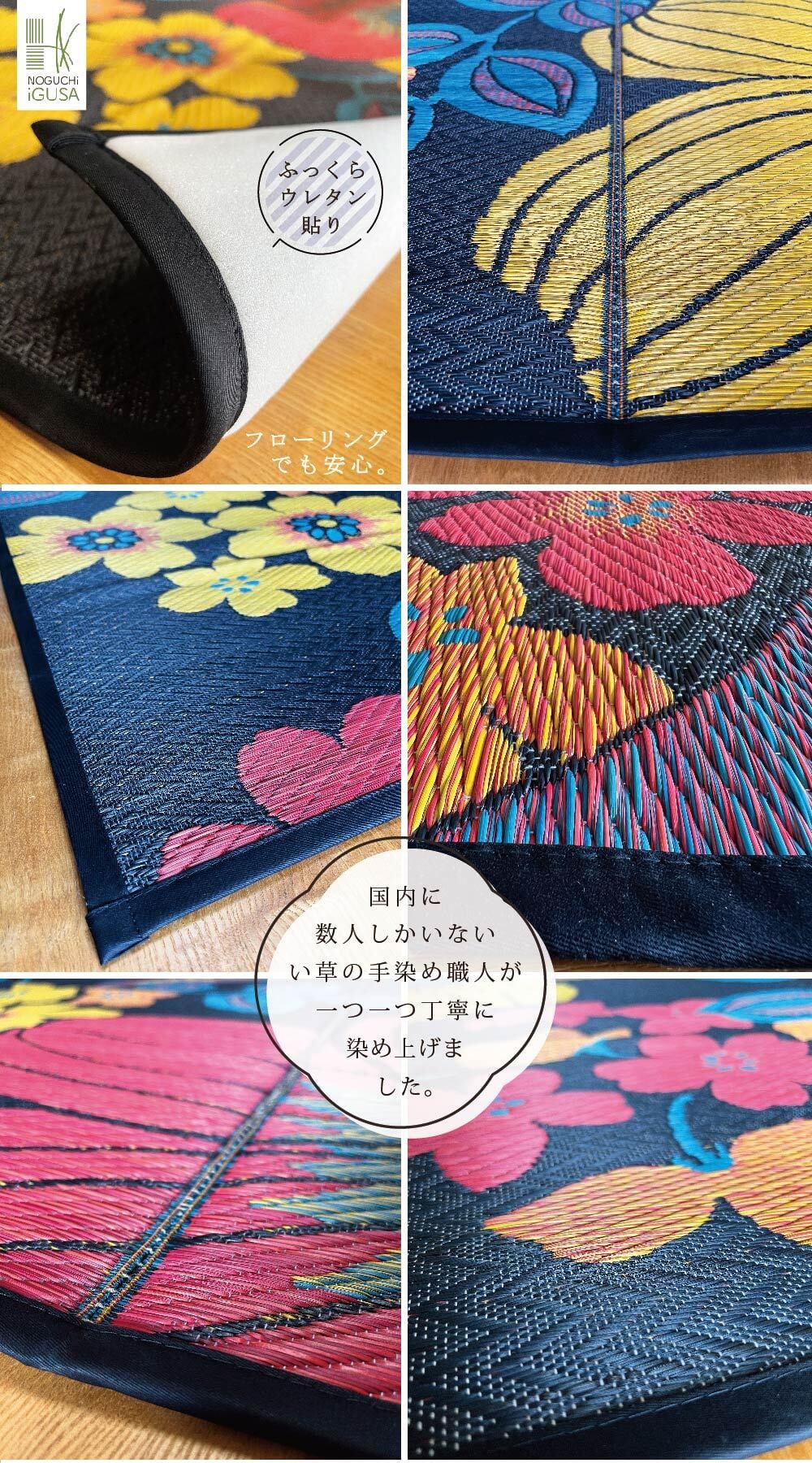 高級な『イ草』を厳選し、多彩に染め上げたいぐさを贅沢に織り上げた高級感漂う一枚です。
