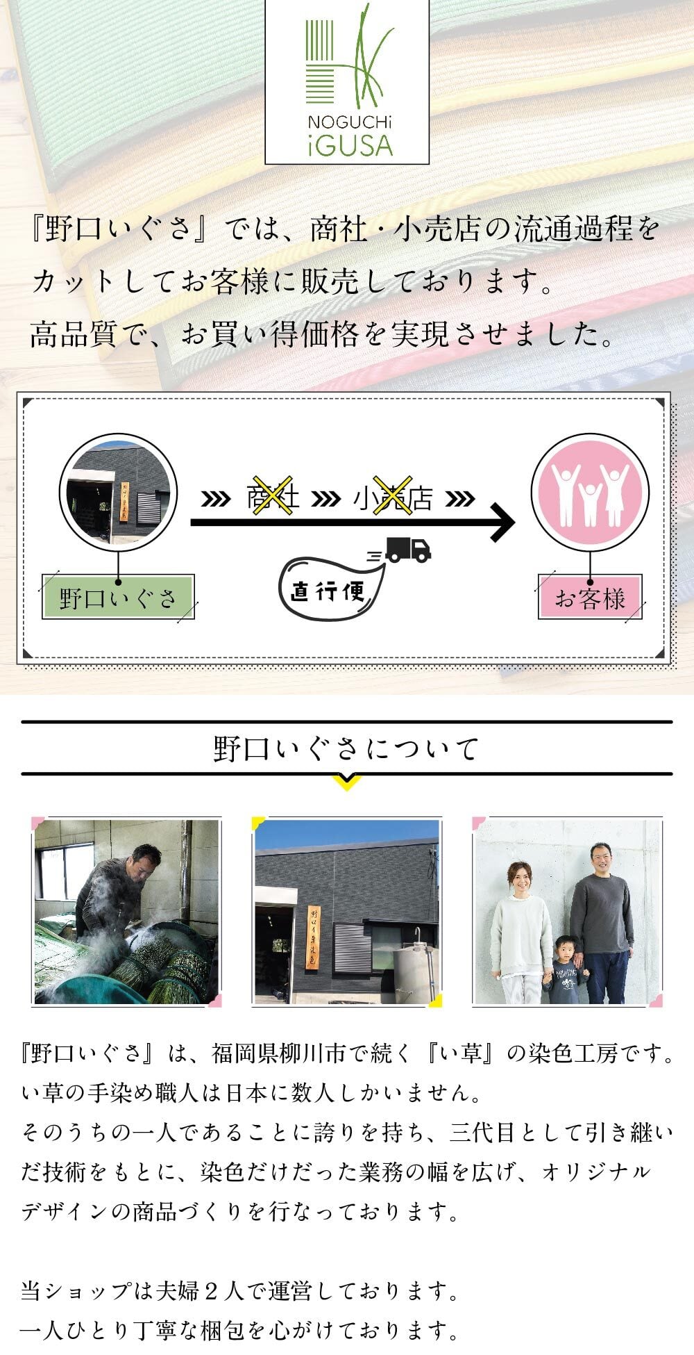 〇材質:(表) 熊本県八代産イ草、(ヘリ)綿100%、(裏)ウレタン