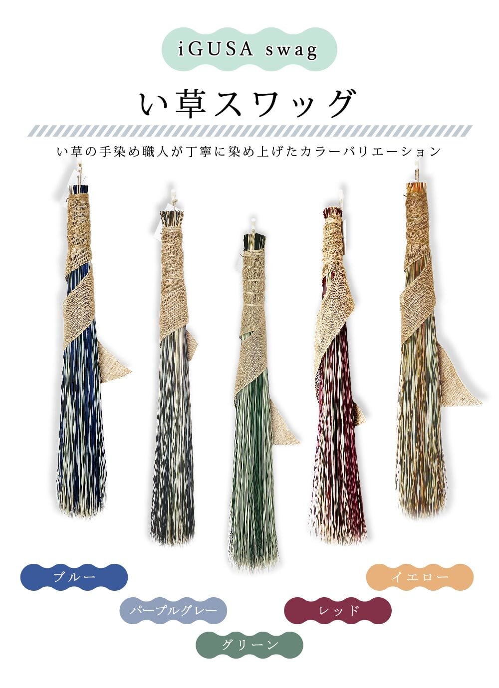 い草の良さをもっと多くの人に知ってもらいたいという思いから誕生した、い草のスワッグです。